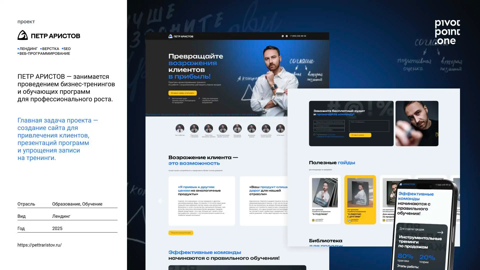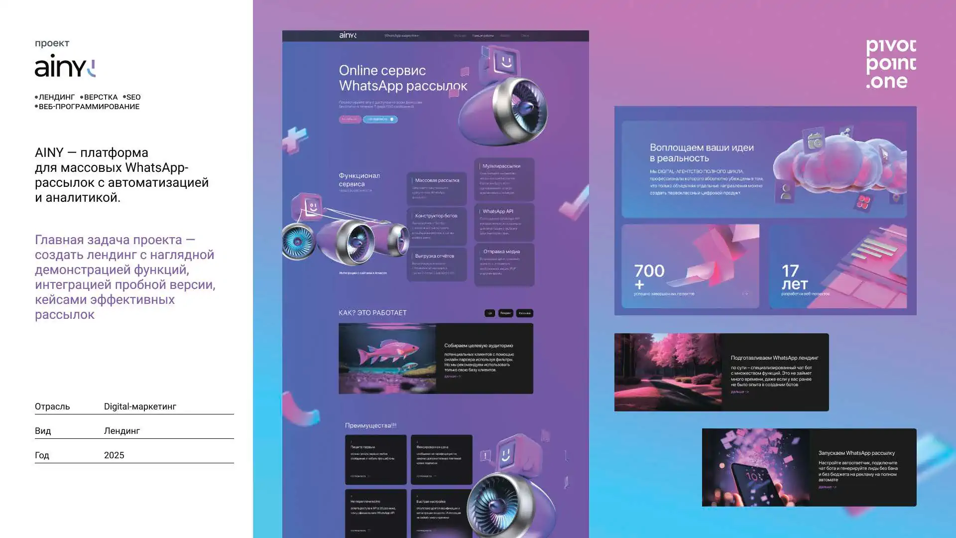 PivotPoint.one — агентство полного цикла: дизайн, разработка, маркетинг и интеграции под KPI заказчика; стабильные партнёрства и кейсы, проверенные метриками.